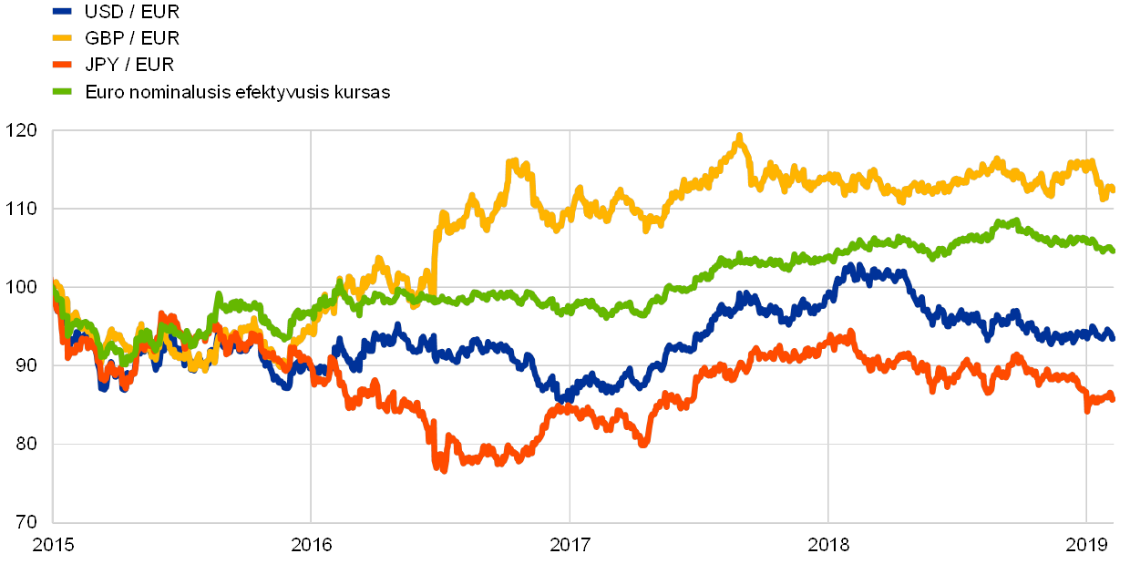 Pastaba: nominalusis efektyvusis kursas 38 pagrindinių prekybos partnerių valiutų atžvilgiu.
